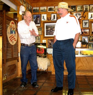 for good in 2004, new boots were definitely in order. We soon learned of Don Atkinson, who has been a boot and saddle maker in his native Oklahoma since age 13. He now has his workshop not far from our place, in Ingram. He is in his eighties, but still gives classes in saddle and boot making – some of his students travel all the way from Japan for his instructions. He still tools saddles and makes boots and belts. He does, only v e r y slowly.