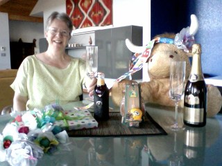 One of my grandmother’s brothers left Europe to seek his fortune in South America, eventually settling in rural Argentina. For several years, while pursuing hair-raising adventures, he had no opportunity to stay in touch with his family. Later, he established some snail-mail postal connection, consisting of a few letters a year – mostly written by our Tante Gertrud, his patient wife. We on the other hand, Pumpkin and I, have something called Skype. Thanks to video calling, we can ‘see’ each other frequently and today we could even enjoy an impromptu birthday party.