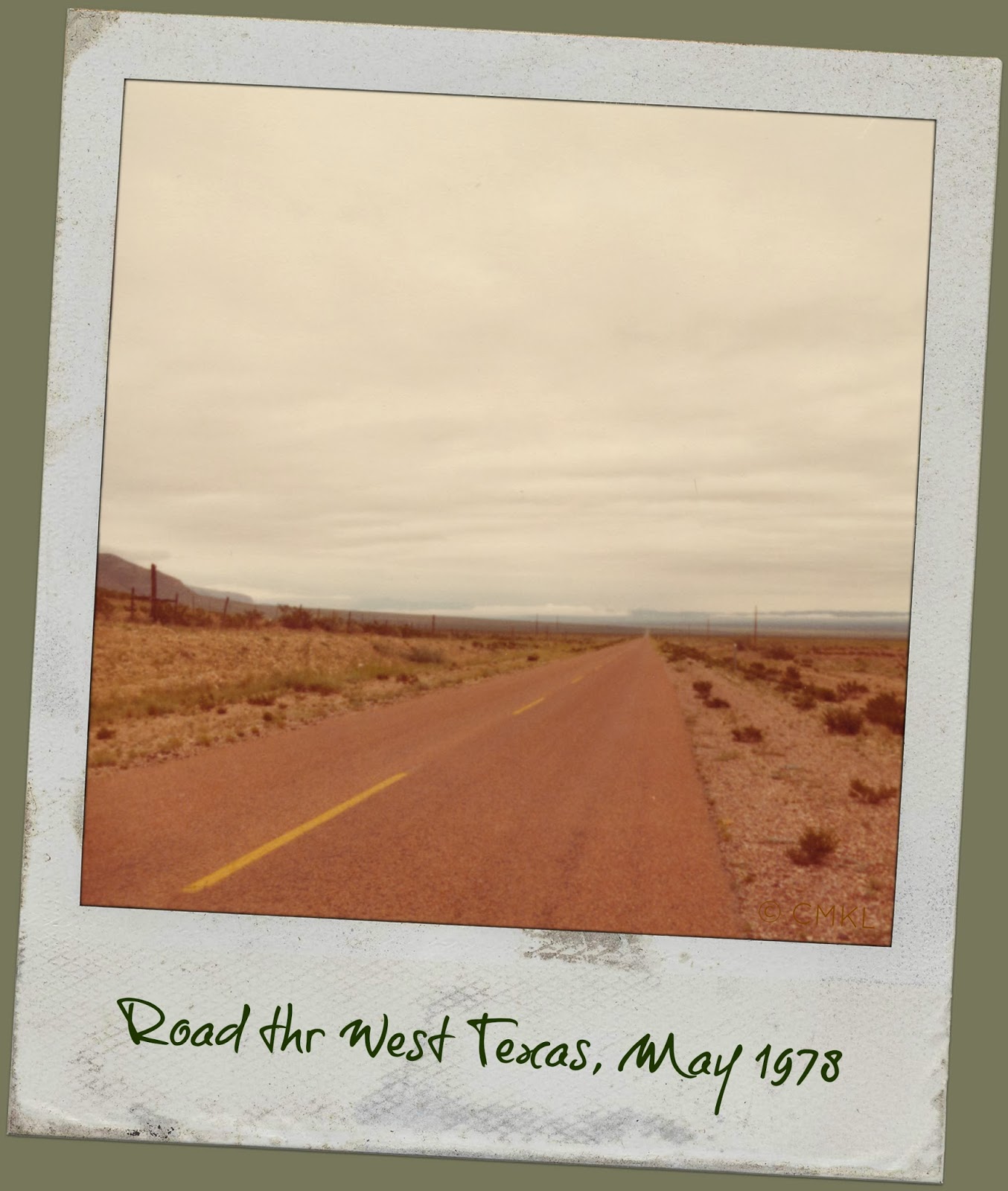 I began my American life thirty-six years ago in Fort Worth, Tarrant County, Texas and I fell in love with the huge sky and endless horizons on a road trip to West Texas over my very first Memorial Day weekend ever in 1978. These four faded photos are relics from that memorable trip out West. I call myself a Texan-by-Choice since then.