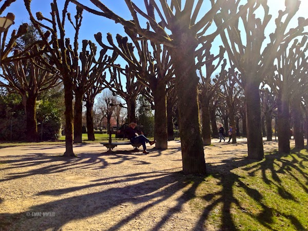 After crossing to the right bank of the Charente river, we rested a little under the plane trees in their winter trim,