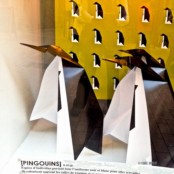 then we turned into the pedestrian zone in the Old Town, where this shop window, displaying giant origami penguins, caught my eye: