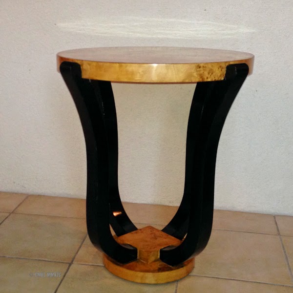 Seeing the delivery truck this morning, I reversed and headed back home, curious to see our new Art Deco pieces. In addition to our two little tables, we also received one large pallet, copious amounts of cardboard and styrofoam packing materials, bubble wrap, shrink wrap and sections of sticky tape of varying lengths and widths. It now graces our courtyard and we better find out, where to find the city dump, although I doubt, the pallet would actually fit in the car. We might have to figure out when they collect balky rubbish. Live and learn, right?