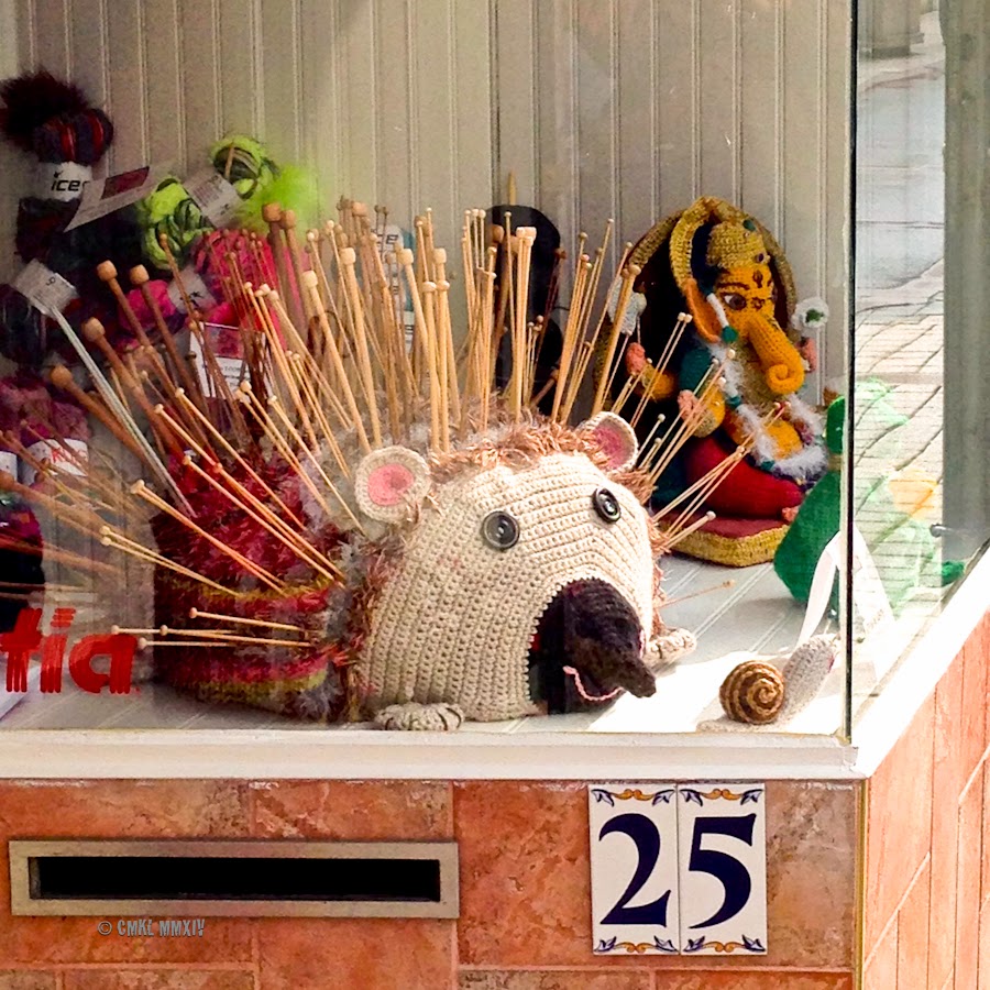 | Everything in Katia’s shop window is knitted, including Ganesha. |