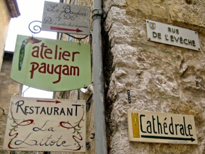 The next day dawned rainy and stayed that way, until mid-afternoon, when we finally gathered our fortitude and walked over to La Vieille Ville, the ancient part of the village where we played gawking tourists.