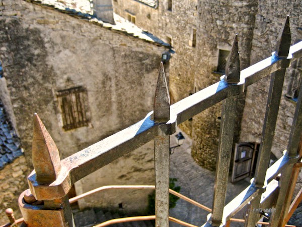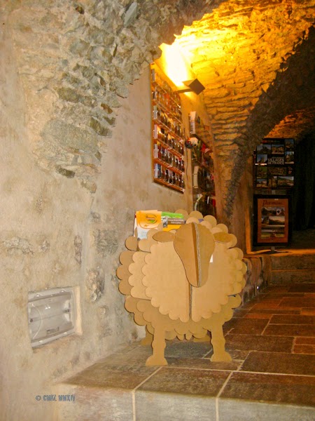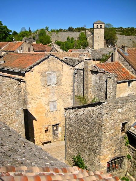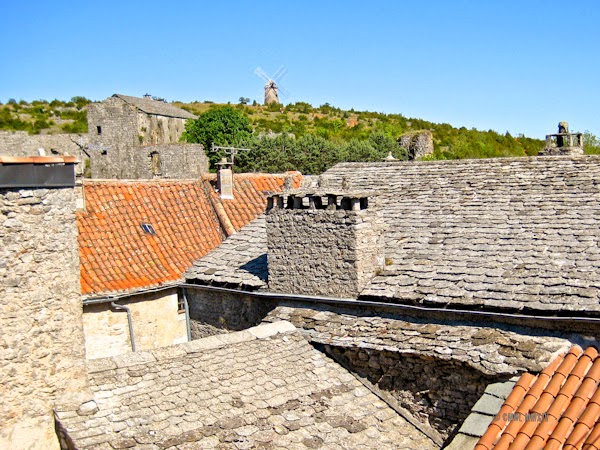 The crazy thing about this fortified village is the fact that it has no water supply. Non. Anywhere. I believe, the video declared Couvertoirade the single defense structure without water in France. But I’m not at all sure about that. The people, who populated this village, the sheep farmers, and artisans, and the soldier-monks who defended it, had only one option open to them: catch rainwater. Aside from defense structures, they built every aspect of the village with this purpose in mind. Roofs were slanted in angles and shingles layered in ways to form channels, directing rainwater in ever increasing rivulets toward gutters, which in turn slanted toward a pipe leading down to an underground cistern beneath each house. Additionally, the whole village was built on a slight incline and solidly paved. The layout of houses in the village was such that gaps between houses formed street level gutters to gather as much rainwater as possible and direct it toward a large pond, which served to water the animals. Much later, I suppose, when warfare was no longer an imminent danger, the pond was relocated outside the village ramparts.