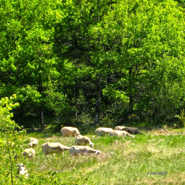| Lacaune sheep grazing to produce the rich milk for Roquefort cheese |
