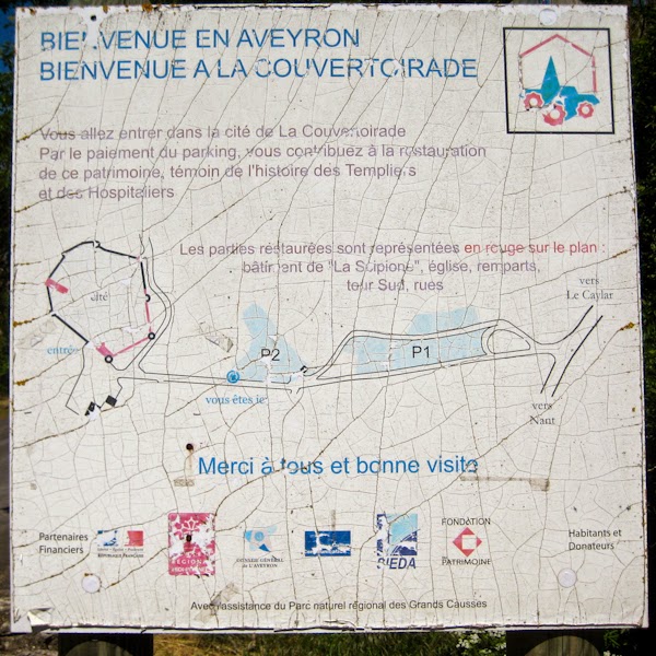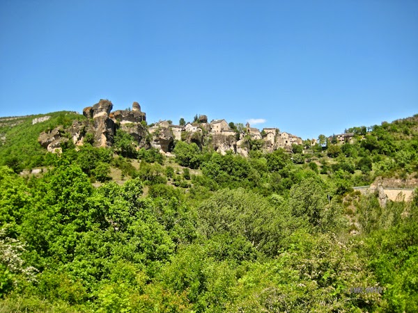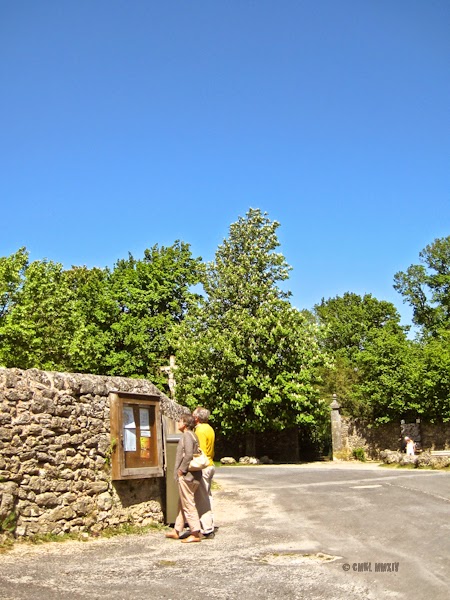 PS: When we were ready to leave, we proceeded to the pay station to pay our €3 parking fee, which, as the sign said, was to be used for restoration work in the village. Ahead of me a couple of young women tried to pay by bank card. Didn’t work. Try another one. Didn’t work. Search purses for a different card. Didn’t work. Search coin purses for cash, which didn’t work. YIKES!! Meanwhile, I was hopping on one leg in frustration. The darn machine was broken!! We tried as well, with cash and cards, no go. Another family group failed to deposit their money. What to do? Bright idea: let’s follow one of the tourist coaches out. Those professional drivers must have a way to raise the bar at the exit, right? That’s what we did. We formed a slow snake with several other cars, sneaking out of Couvertoirade behind a Spanish bus – and all of us would have been more than happy to support the village. Pity!