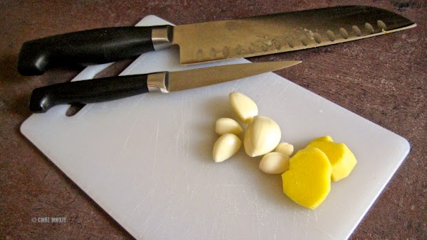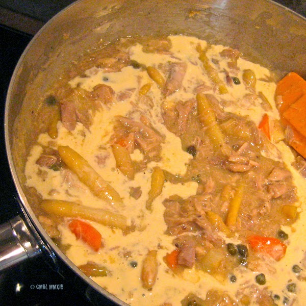 What a disappointment – our 1.7 Kg chicken was reduced to a mere 497 gr of meat. Plugging every teensy weensy little bit of chicken meat off those bones – and I know, how to find all of it, being a retired anatomist – that’s a lot of trouble and it turned this into one heck of an expensive chicken dish, considering the labor going into its preparation.