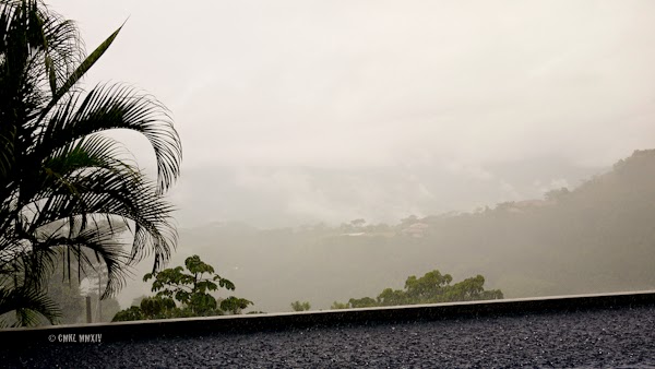 The series of thunderstorms, which passed through El Valle Central yesterday was a welcome change from drought worries. This is the wet season I love! Rapidly changing cloud formations and eerily drifting veils of fog shrouding the familiar landscape in milky white gauze. At times, the fog seeps through the insect screens into the house so you can feel its moisture like cool fingertips briefly caressing your cheek. The first rumbling of far-off thunder could already be faintly perceived around 10:30 in the morning. That’s pretty early in the day for storms to roll in. Between noon and three thirty in the afternoon, one storm after another passed through in ebbing and cresting waves of heavy rain. Our roof acts like a steel drum, magnifying the sound of rain in deafening crescendos. Thanks to the efforts of our friend and skilled Fixer-of-Everything, Don Julio Calderon, we only enjoyed sounds and visual effects – no more leaks!!! Watching the Green Bay Packers play the Rams, on the other hand, was more like watching a vividly colorized silent movie.