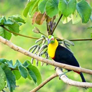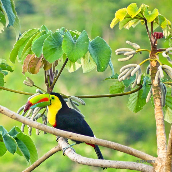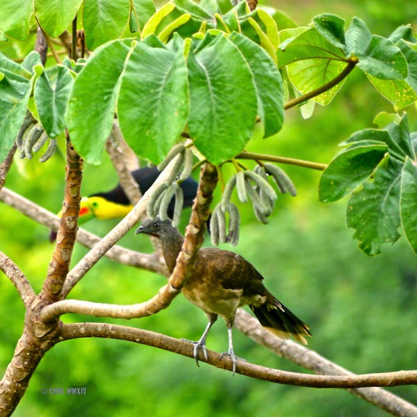 And then there was … a toucan? Amidst the flock of chachalacas hovered a toucan, also munching on guarumo fruit!