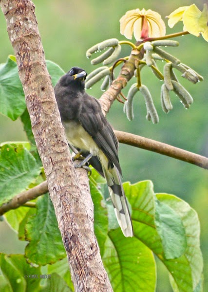 Peace returned to the guarumos after this latest group invasion. By then it was after 16:30h and on an overcast day like yesterday, only about an hour remained till nightfall. Gradually the usual dusk suspects trundled in. Mostly assorted passerine birds, like flycatchers and, of course, the ever reliable Mr. & Mrs. Hoffmann, our resident woodpeckers.