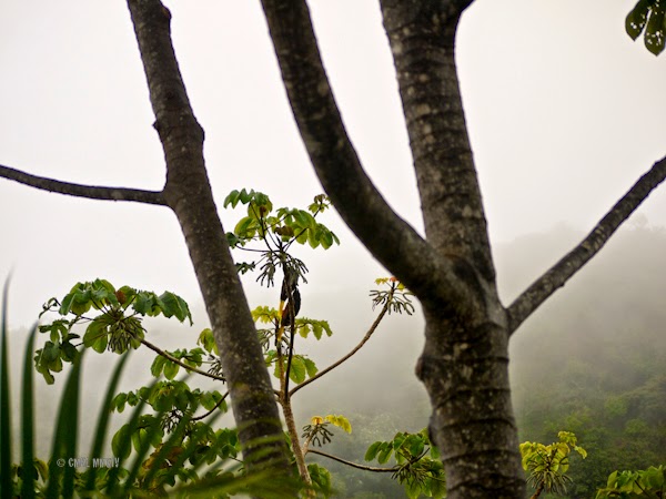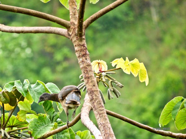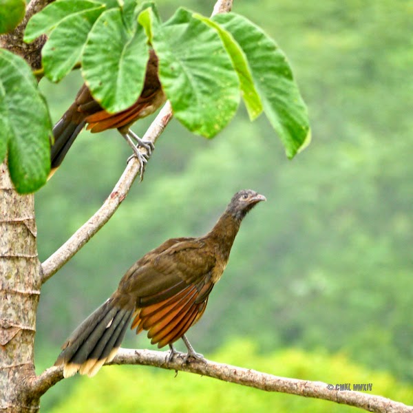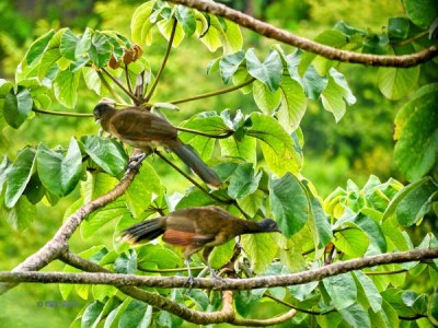 But not for long. Within thirty minutes the trees rustled with chit-chat and frantic activity again. Were the oropendolas back? No. Several rather, hm, ugly chicken-like thingies were using the guarumo branches like acrobats on high wires.