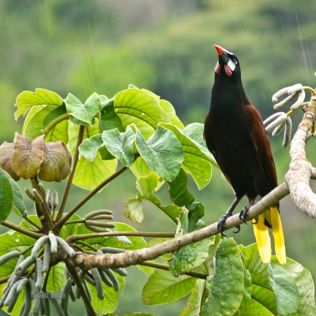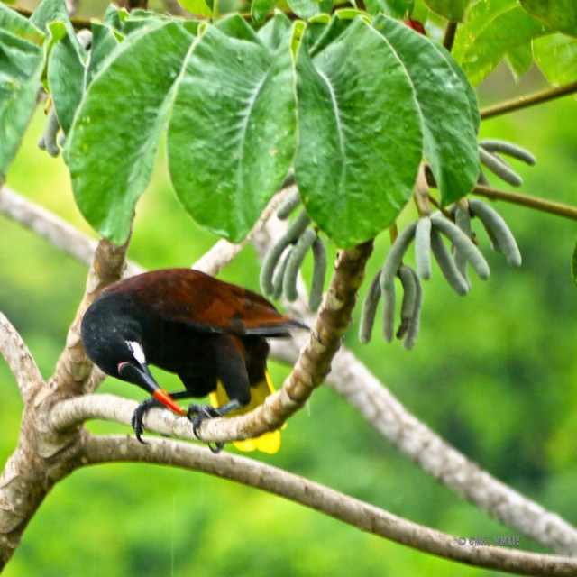 Earlier this week we had a brief visit from a German friend, with whom I had gone to school at the Eberhard Karls Universität Tübingen almost 40 years ago. During his visit, he saw some Montezuma oropendolas (Psarocolius montezuma)in the mighty guanacaste tree across the street from our house. And a toucan and a black spiny-tailed iguana, but all of them were quite far and we couldn’t see any markings or other details.