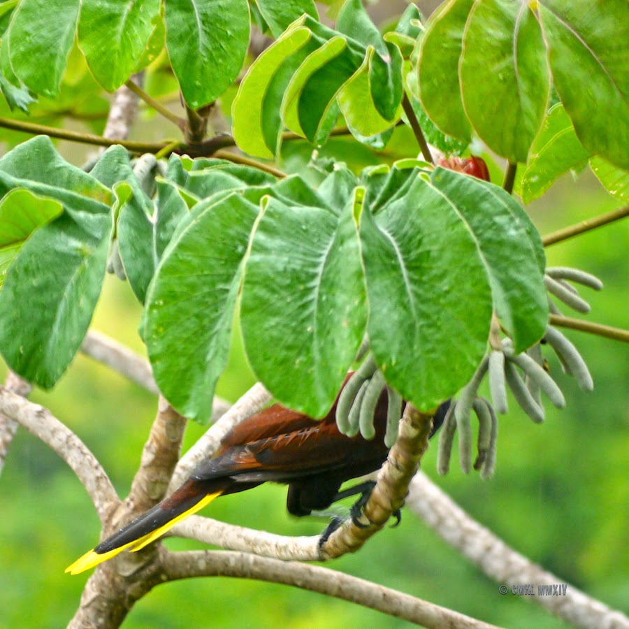 Here, I clicked a second too late to catch one of the oropendolas distinctive nosedive bows, better seen here, including professional recordings of their marvelous vocalizations.