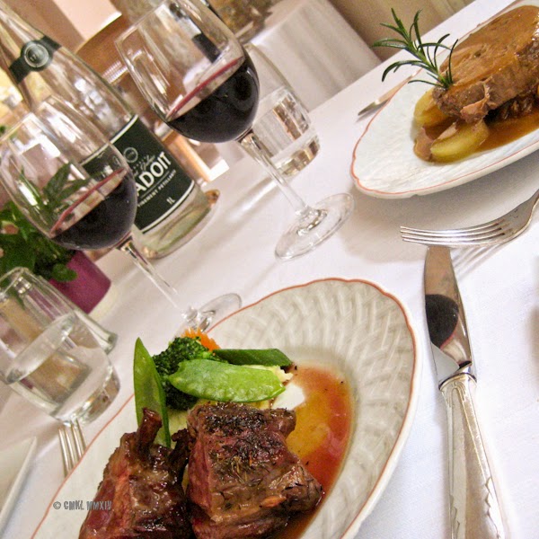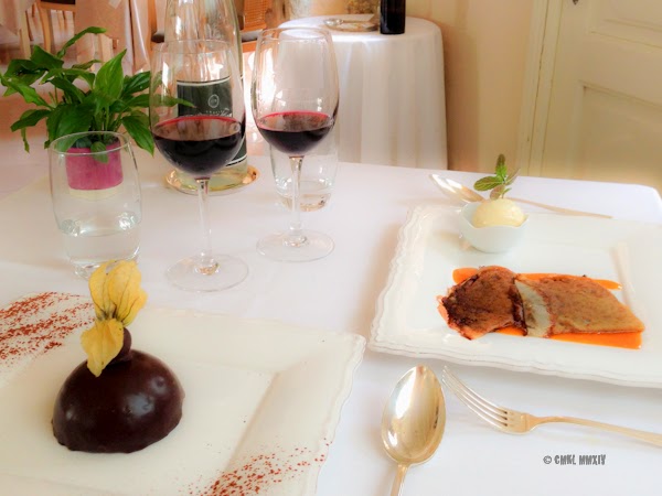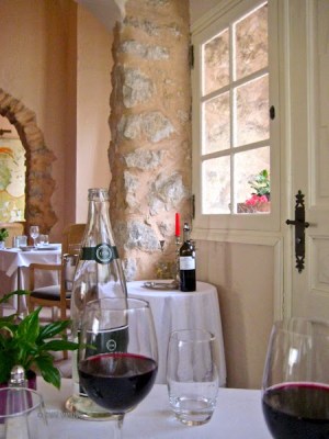 FOH** at the Vieux Couvent is run expertly by Mme Sonia Bissière, who together with her husband has owned and operated the Vieux Couvent since 1990. Madame is ever the gracious hostess, she made us feel welcome and special and assisted us with our food and wine choices. But make no mistake, there is an eagle-eyed Maître d’ hidden behind that gentle exterior, who is very much in charge of operations, quietly supervising the staff, catching every little smudge, before it could possibly offend a guest. And keeping a subtle eye on those messy guests as well. After we had finished our main course and the dishes had been removed, Barry absentmindedly brushed some bread crumbs off the tablecloth. Instantly Madame rushed over with a little brush-&-tray set, admonishing him sternly: ‘Not on the floor, Monsieur!’. Wonderful!