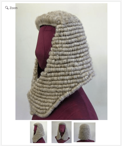 | screenshot of judges’ wig sold through Stanley Ley, Legal Outfitters, London horsehair, handmade, about $2000 |