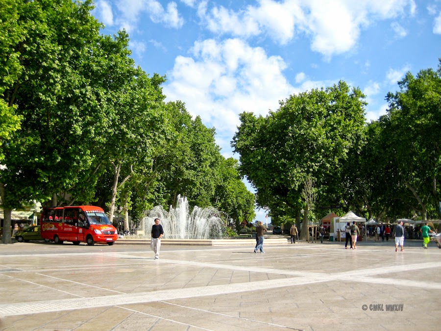 Walking East into the Esplanade we discovered some wonderful artisans displaying their work. The far end of the Esplanade opens to ‘Le Corum’, with its new opera house and conference center, all clad in pink marble.