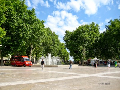 Driving to Montpellier exactly 800 years after Maria’s ascension to power, we swooped down into the city from our swap home in Pézenas, guided by a GPS mobile app, directing us turn-by-turn to the most convenient parking facility in the very heart of the city. A whole lot easier than Eudokia’s approach, I’d say!