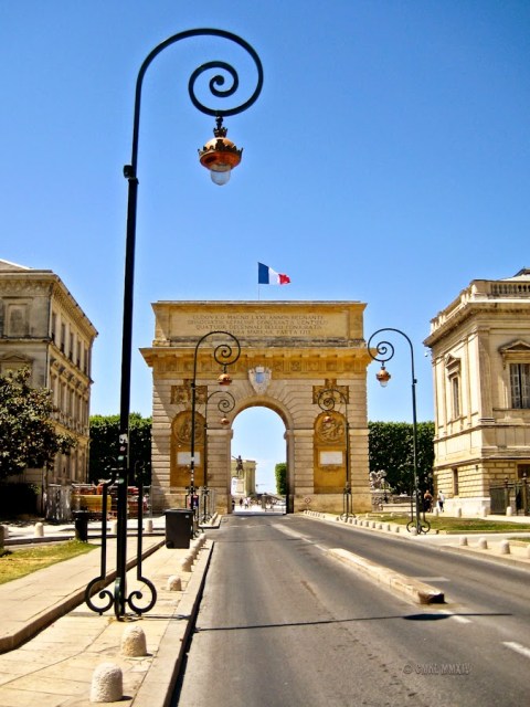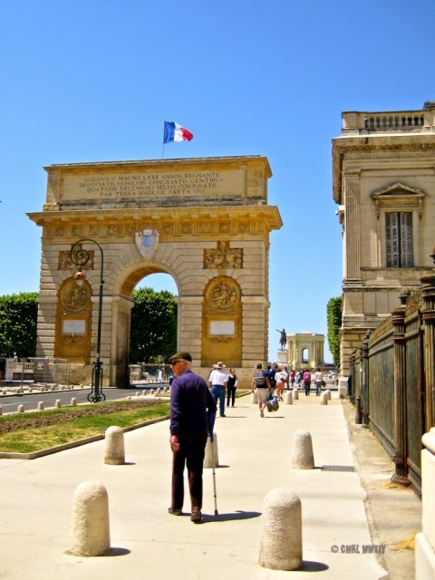 The French call their municipal water towers ‘water castle’ (chateau d’eau), most of which aren’t as over the top, as this one. As it sits serenely on the highest point of the Promenade du Peyrou, fronted by a reflecting pool, it’s purpose is simply to beautify by hiding a very large tank beneath it. This tank received drinking water for distribution around the city. The rear of the tank was connected to an aqueduct, built around 1760, bringing crisp mountain water from the river Lez.