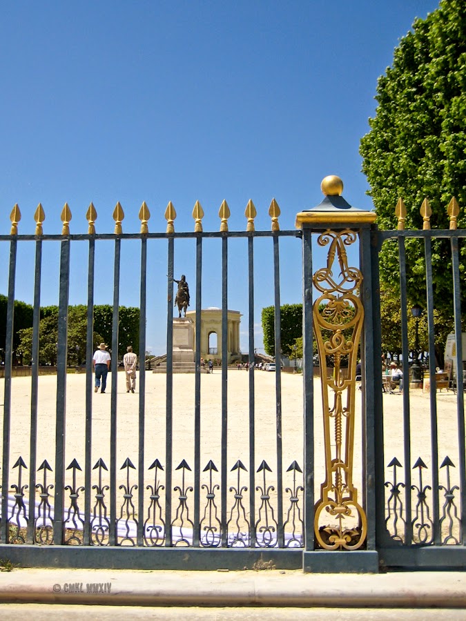 There you have it. Louis Quatorze (Louis XIV), the Sun King, the l’état-c’est-moi-Louis, who reigned longer than any other European monarch in modern history. He’s being honored with this triumphal arch. It states that Louis the Great reigned for 72 years, that he fought wars for four decades to united the nations and suppress dissenters, achieving peace across land and seas, dying in 1715.