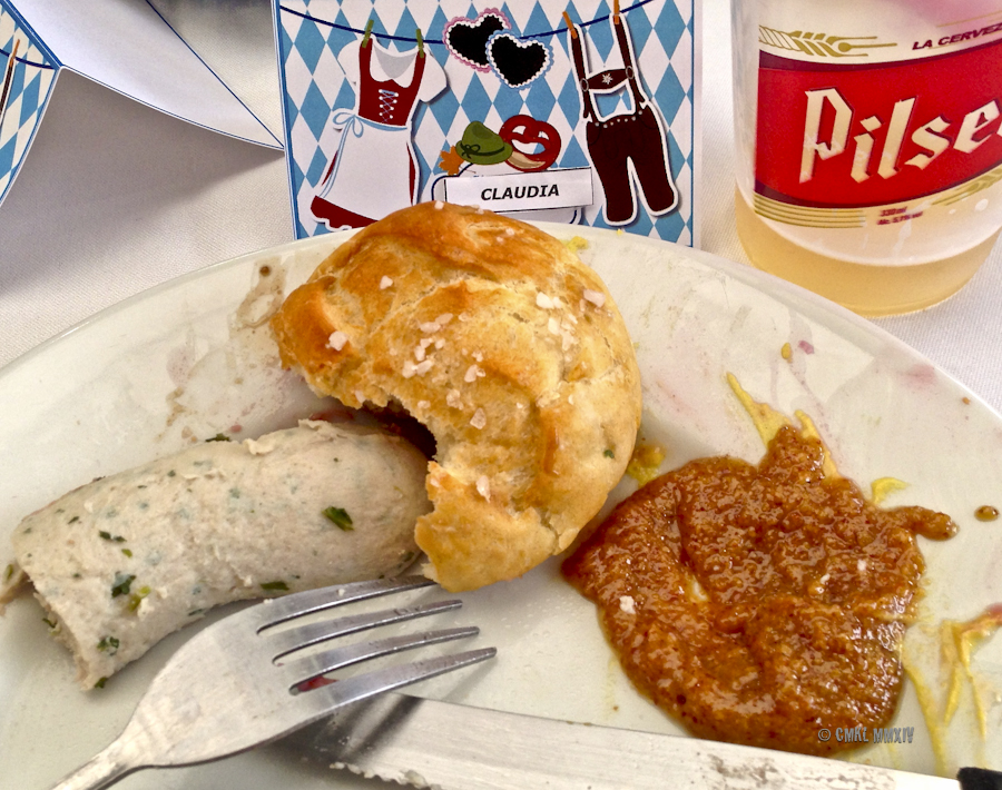 Oktoberfest consists mainly of beer, some more beer, lots of food & fellowship. Since the Balcón is famous for its cooking and baking, everyone overindulged and then some. Weißwurst (excellent!), Leberknödel (delicious!!!), Leberkäs (don’t know, had to eat all those Knödel & Wurscht), Brezn’brötchen, salads, Sauerkraut, and so forth.