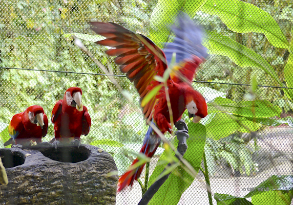 The parrots have their own aviary and these tree Scarlet macaws (Ara macao) were a special treat, before leaving the bird sanctuary!