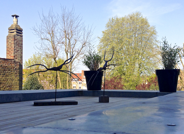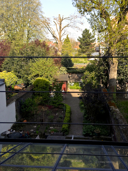 Our host prepared a sumptuous meal of seafood delicacies, starting with maatjesharing (young brined herring), followed by the most delicious lentil salad with salmon, culminating in pan fried trout. Lekker, lekker! The following views of the backyard will certainly appear again in a post or two next year, showing a different season, a different light, an all new atmosphere.