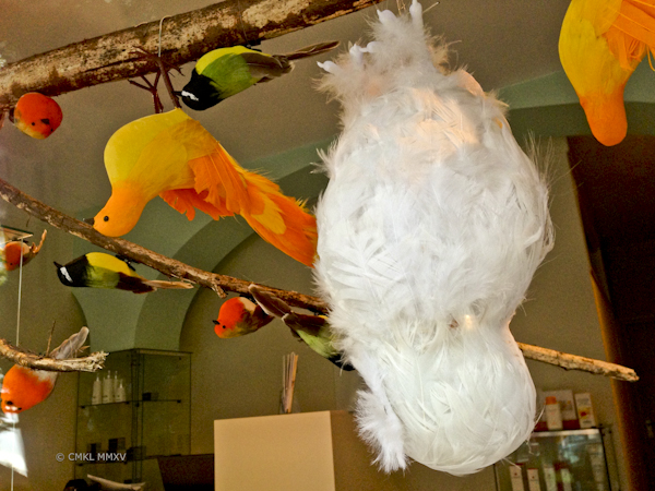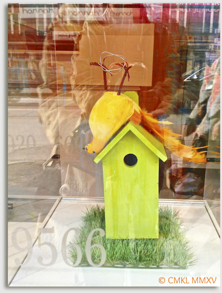 Just around the corner from our house I discovered a mysterious shadowbox, filled with captured reflections of imagined realities. The Birds dream of flight, but their wings are trapped in the past.