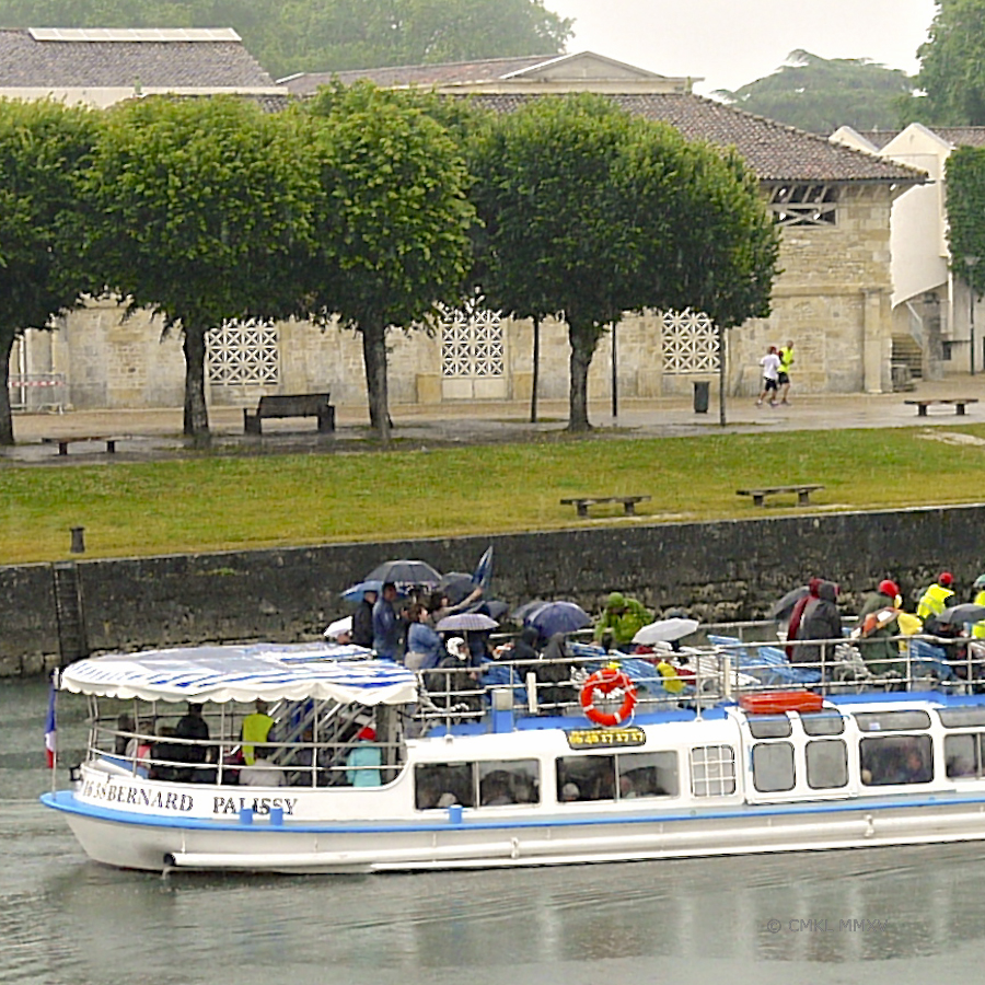Boarding commenced shortly and a motley crew of umbrella-toting and poncho wearing stalwart tourists dispersed over the two levels of the Bernard Palissy II, one of which, as is quite apparent fully exposed to the elements.