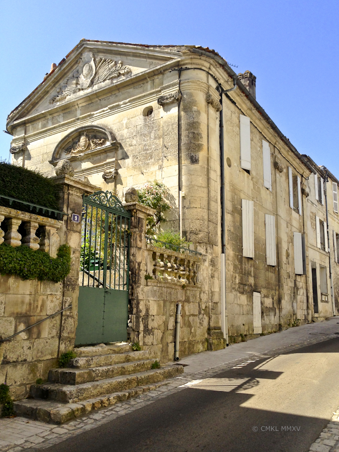 As I learned online, our local Docteur Jacques-Louis Doussin-Dubreuil, who initiated the foundation of a surgical school in Saintes, was a student of the esteemed Monsieur LaPeyronie, from whom he adopted the concern regarding barbers as surgeons. Dr. Doussin was so persuasive in his arguments for the need of qualified medical professionals that the most influential resident of Saintes at the time, the Marquis Guinot de Monconseil, built the good doctor his desired school, L’École de Chirurgie, for the training of Maîtres de Chirurgie, Masters of Surgery, at what would later become #9 Rue Saint-Vivien. Voilà!