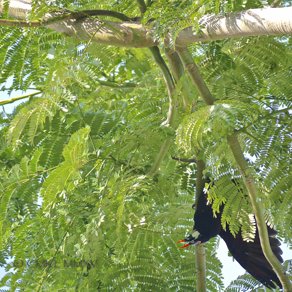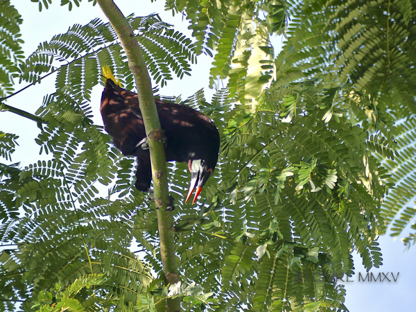 He came by early this morning. As he had done a number of times during the last two months. He settled on a branch of our gigantic yellow jacaranda (Schizolobium parahyba), called ‘El Gallinazo’ (chicken-footed: the shallow root system can look like bird feet).