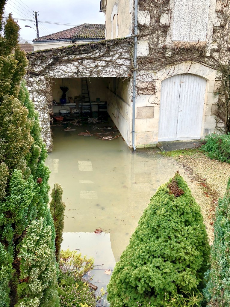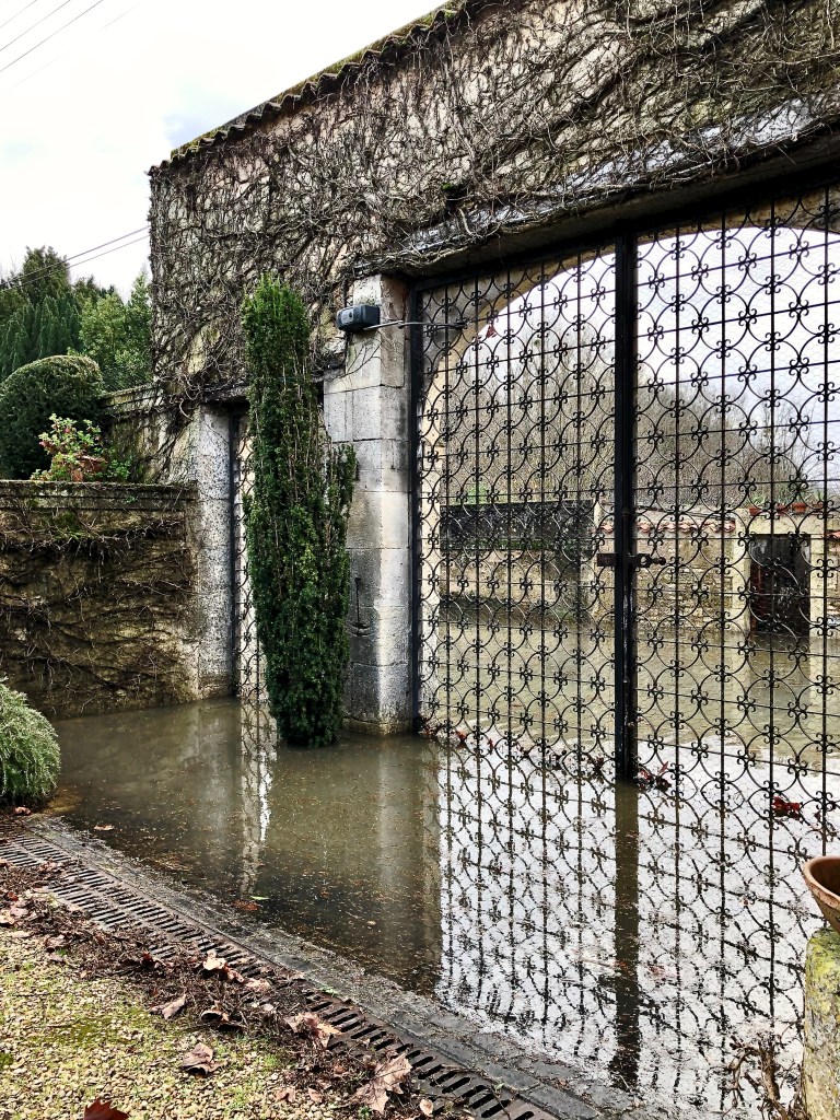 Well, well, well, the river Charente is officially causing concern right and left. The headline in today’s regional paper reads: ” Les niveaux d’eau pourraient être les plus hauts observés ces vingt dernières années ” meaning, the water-levels may be the highest observed during the last 20 years. More worrisome even was this front page announcement :