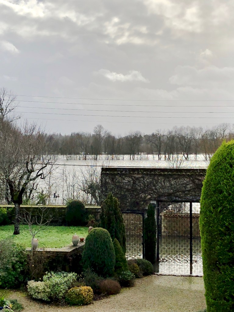 You’ll forgive me if I seem a little distracted this morning. Not only has it rained all night, it continues to rain non-stop. The flood gage reads 7.55 m @10h00 this morning which constitutes a 10 cm rise in water levels of the Charente river during the last 24 hrs. We are approaching the levels of the Great Flood of 1994. Additionally, our boiler has stopped working and it’s beginning to feel chilly in the house. Coincidentally with the dead heating system, this happens to be the coldest weekend in a while. Naturally. Doesn’t it always work like this? I haven’t been out to survey the expanding lake in the garden yet. I feel chilly enough as it is, so I don’t want to add wetness to the discomfort equation, I’m sure you understand.