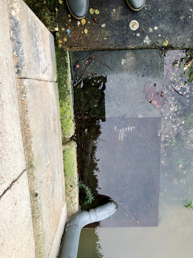 The “canal” had in fact spread into our drive way. A closer inspection revealed a depts of about 30 cm/12 in of water near the gate.
