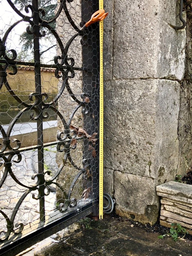 The scissor handles in the picture above indicate the high water mark at our gate: 92 cm/36 in! When the government declared our area a national disaster zone, it gave me the brilliant idea to déclarer un sinistre, to file a claim with our home insurance provider in the hope of a refund toward our not insubstantial hotel bill. Like all bureaucratic processes in France, it took a few months to come to fruition.