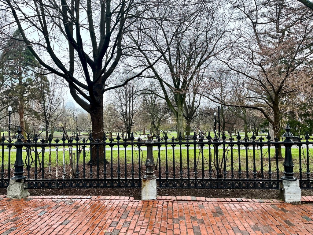 The rainy Boston Common, the oldest city park in the US dating from 1634