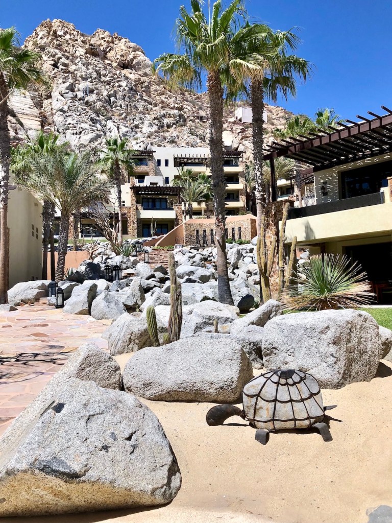 We had not been able to see our children and our one and only granddaughter for roughly three years. In order to spend an unencumbered and relaxed time with them, we took the whole kit and caboodle for a family vacation to a posh resort, the El Pedregal Waldorf Astoria in Cabo San Lucas, Baja California Sud, Mexico, which one enters through a tunnel bored through a protective mountain.