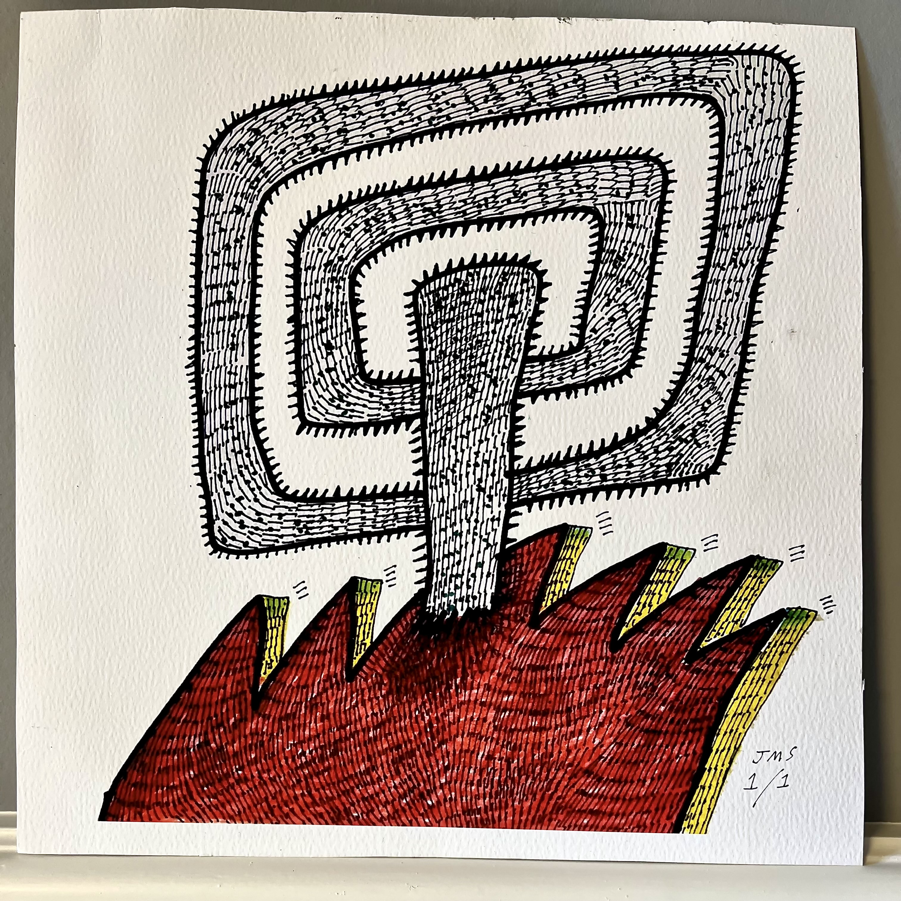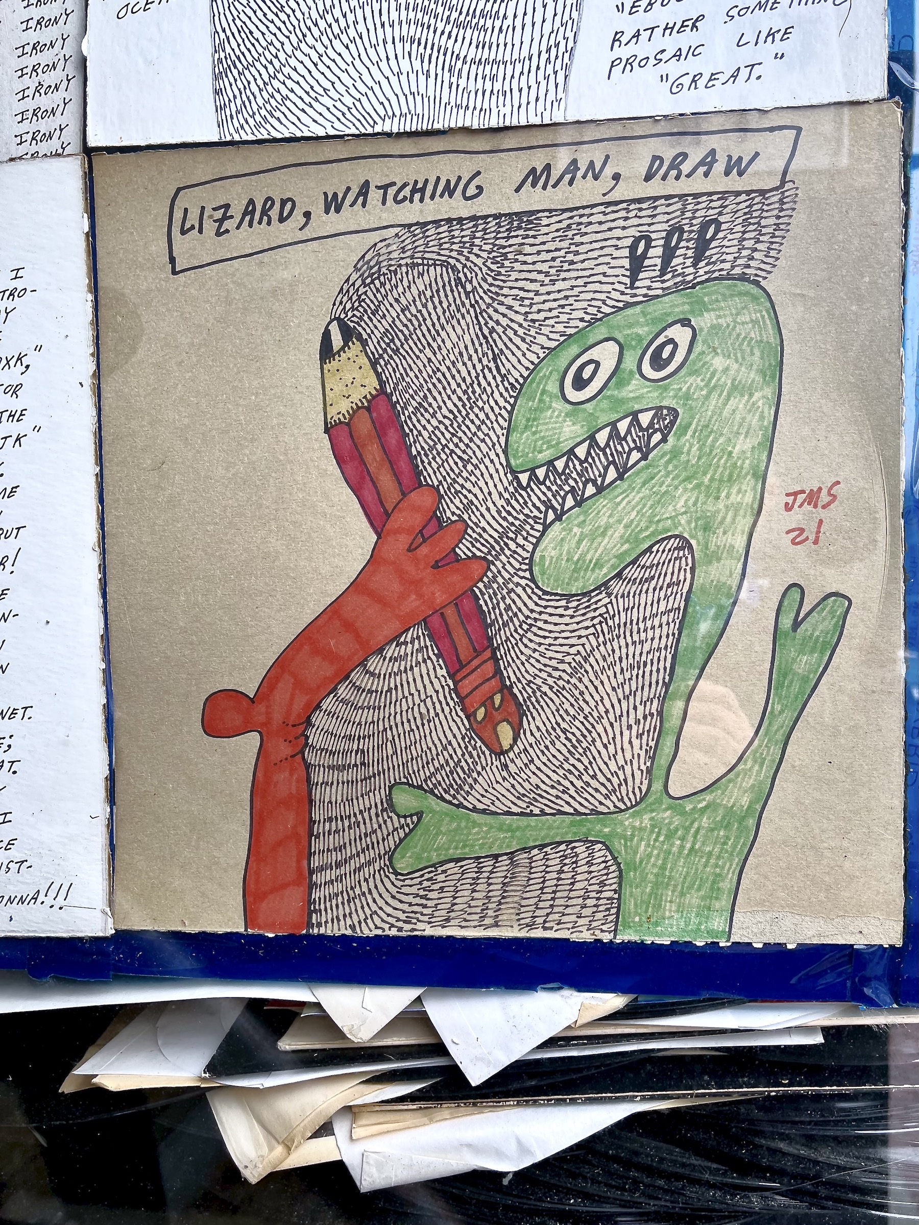 The work of Gloucester outsider artist Jon Sarkin. We bought the one on the right, but I never asked him, if it had a title. What should we call it? “Prickly Wavelength”, maybe?