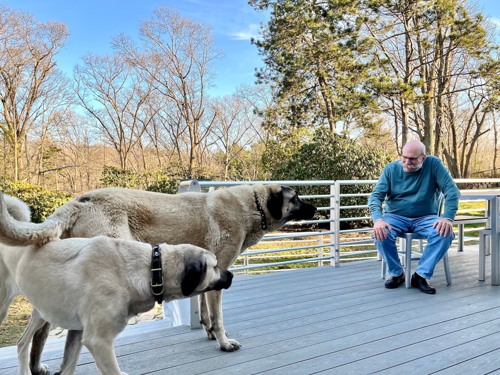 A new adventure unfolded in and around Boston with our beloved friend and hostess Mary, her three Kangal dogs, her partner in goldsmithing, Caro-Gray, our new friend Karen who loves blueberry pancakes, Mary’s brother Robert-the-French-student, his wife, potter Anni*, and George and Ellen, and Lynne and Hans-almost-from-Blankenese, and so forth! Goodness gracious, all those special humans and dogs!!!!