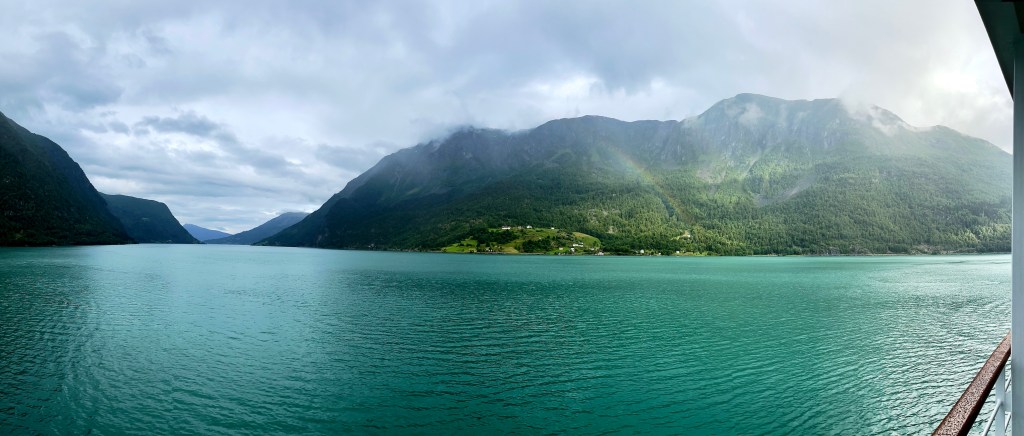 As we awoke on August 1st, 2022, we were just arriving at the very end of the longest and deepest of Norway’s fjords, Sognefjord. The village of Skjolden [pronounced Sholden] marks the endpoint of Lustrafjorden, the last branch of the Sognefjord, which extends from the North Sea deep into continental Europe’s highest mountain range called Jotunheimen, the home of Jotnene, the fabled giants of Nordic Lore.
