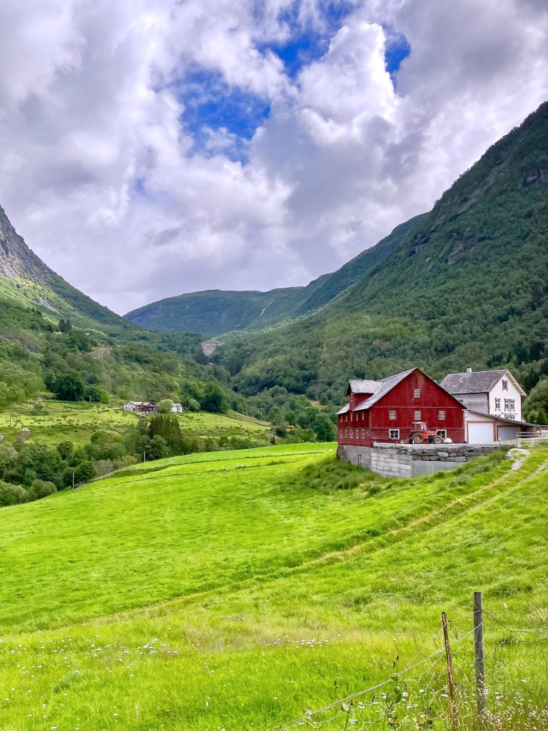 Norway is full of red or white clapboard houses and barns, in fact, my husband who grew up in Milwaukee thought it looked just like Wisconsin! Several guides told us that the red paint, consisting mostly of red ochre and cod liver oil was the least expensive color to use. White paint needed the mineral zinc that was quite expensive to purchase, so only well-to-do families could afford it. Some farmers used to paint only the seaward façade of their home white to present a smart image to the world.
