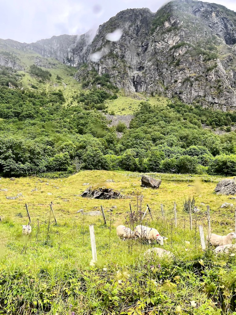 But now let’s return to Skjolden, shall we? Please keep in mind that since boarding the tour bus, I took all pictures through the one and only bus window available to me. It’s the law to be strapped in tightly in Norwegian buses, which is unfortunately not ideal for taking pics! Oh, and remember that the smaller pics are clickable to enlarge them. C’est parti !