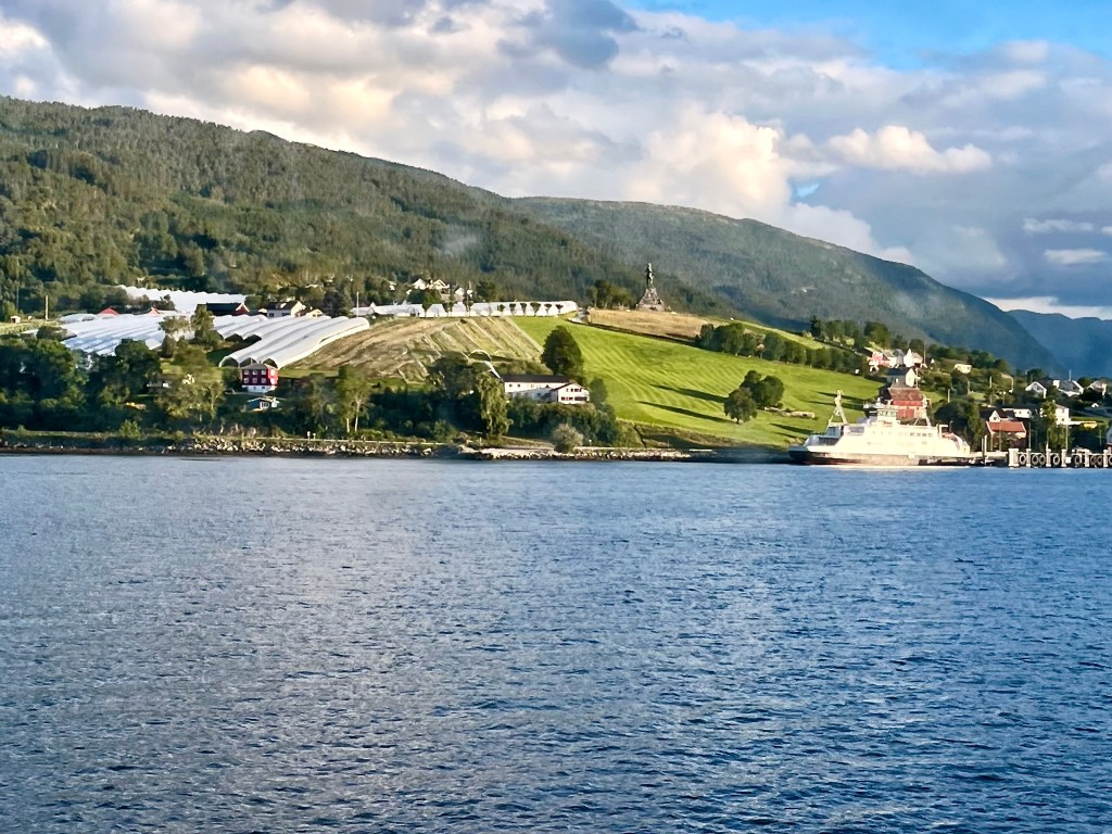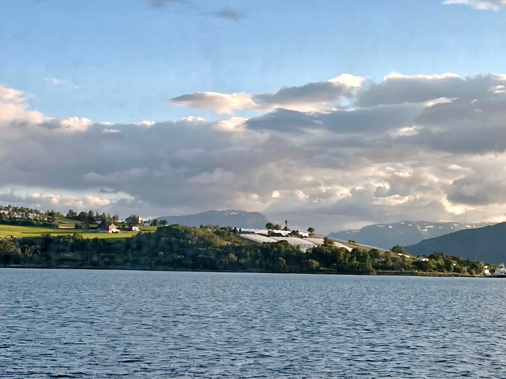 Only after identifying the location and looking at enlargements of my pictures, could I confirm that there was indeed something “sticking up” in that obviously rather agrarian village with its multitude of greenhouses. The village is called Vangsnes, it’s located on the Southern bank of Sognefjorden, roughly halfway along its length. As a settlement, it has been around for a very long time because the large, flat peninsula is one of the more fertile areas along the fjord.