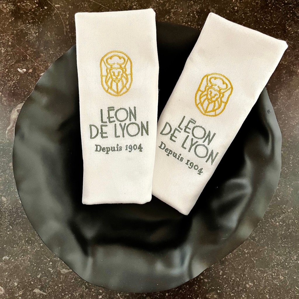 It was delicious and great fun, and being practically cousins, the Léons de Lyon allowed the Léons de Cognac to “steal” two of their embroidered and stiffly starched cloth napkins 😎