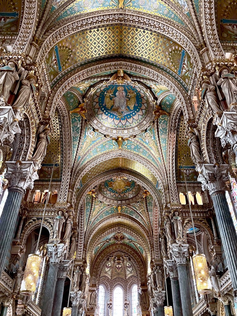 The interior of la Basilique Notre-Dame de Fourvière was reminiscent of another Italian town, Ravenna, and its world famous Byzantine mosaïcs.