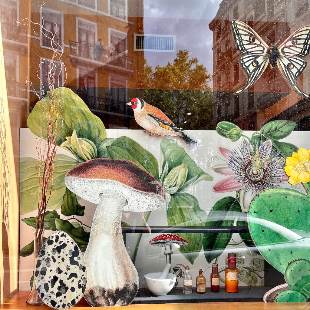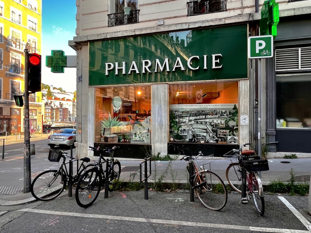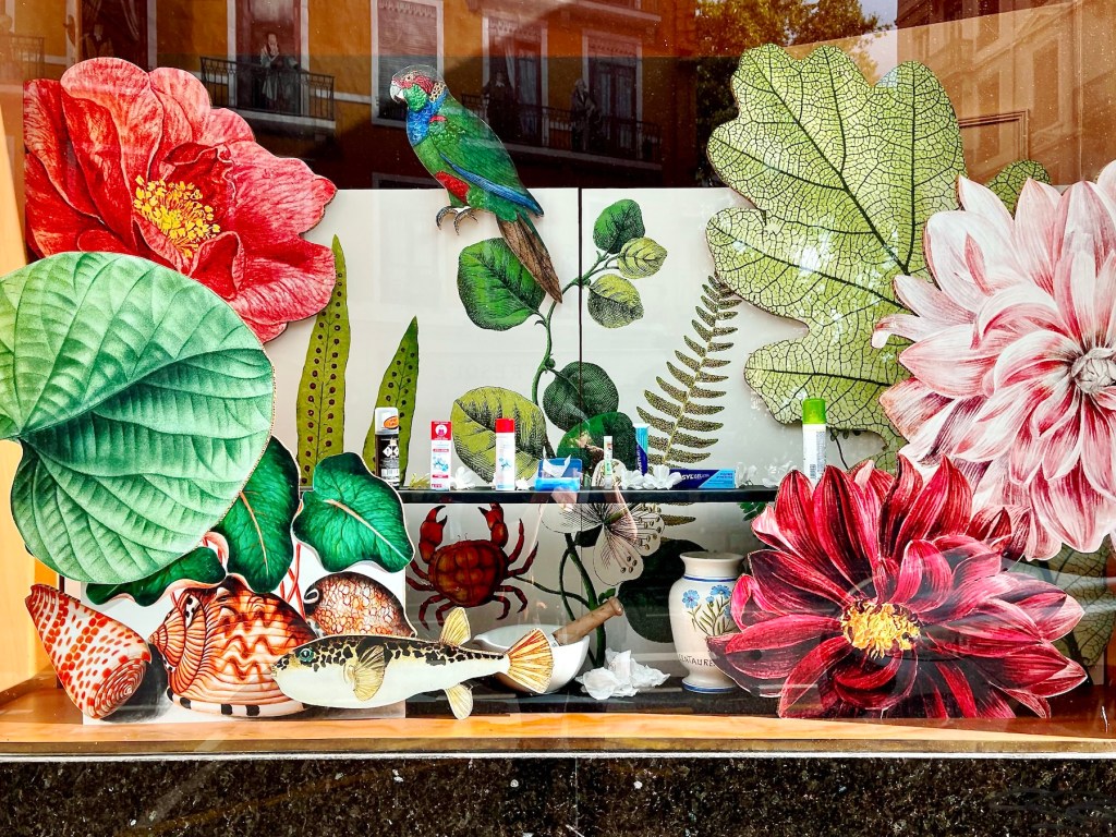 Meanwhile, the pharmacy across the famous frescoed building displayed some beautifully decorated windows.