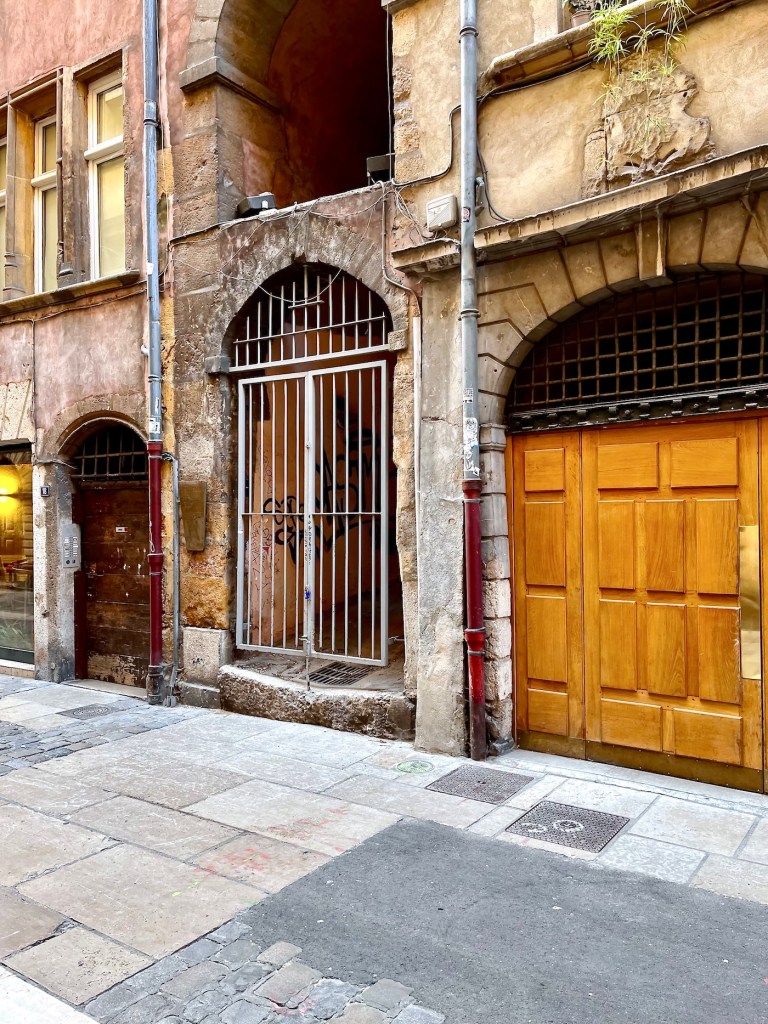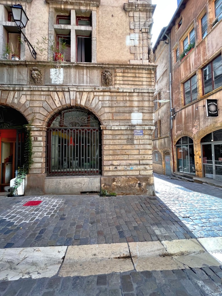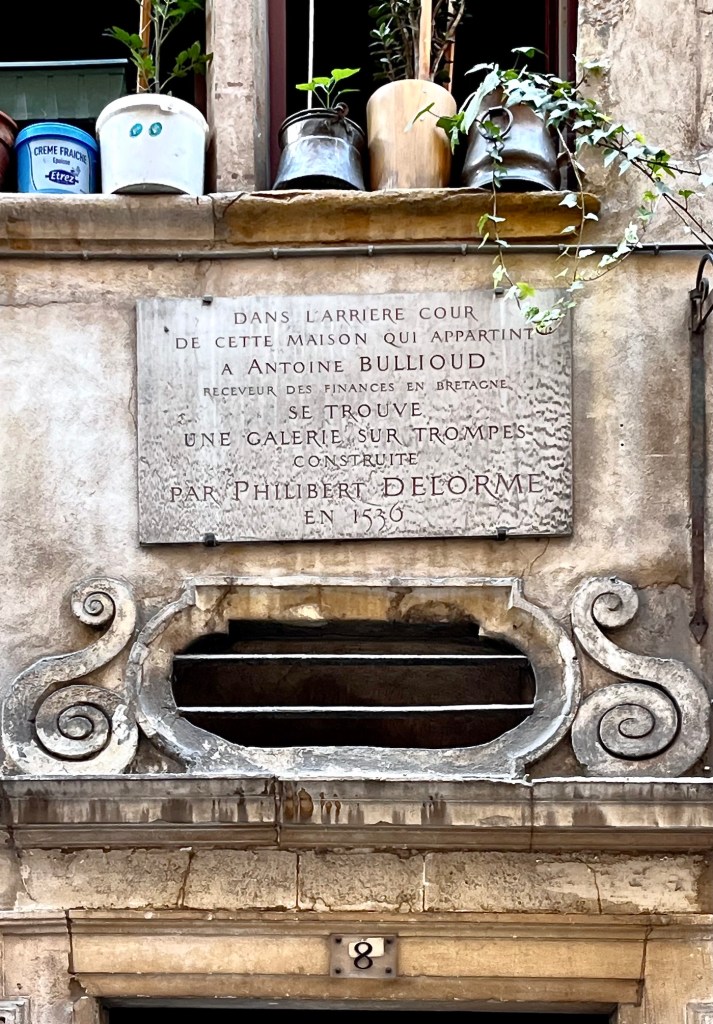 It’s time to walk on and look at a few more bits and pieces of interest in this cobbled lane filled with so much history, spanning an arch from medieval cattle markets to the very first Renaissance gallery in Lyon at house Nº8, designed by celebrated architect Philibert Delorme in 1530 upon his return from studies in Florence.