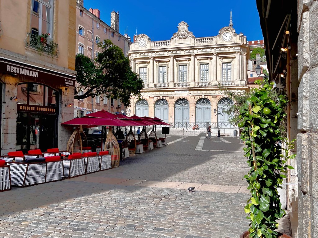 Circling around the church, the Temple du Change, a United Protestant Lutheran Church, we’ve returned once more to Place du Change. This Protestant church was established in 1800 in the former Exchange Lodge, the market hall, where the traditional Foires frances, the ‘duty-free’ markets of the merchants of Lyon took place. The front of the church faces la Maison Thomassin across the plaza.