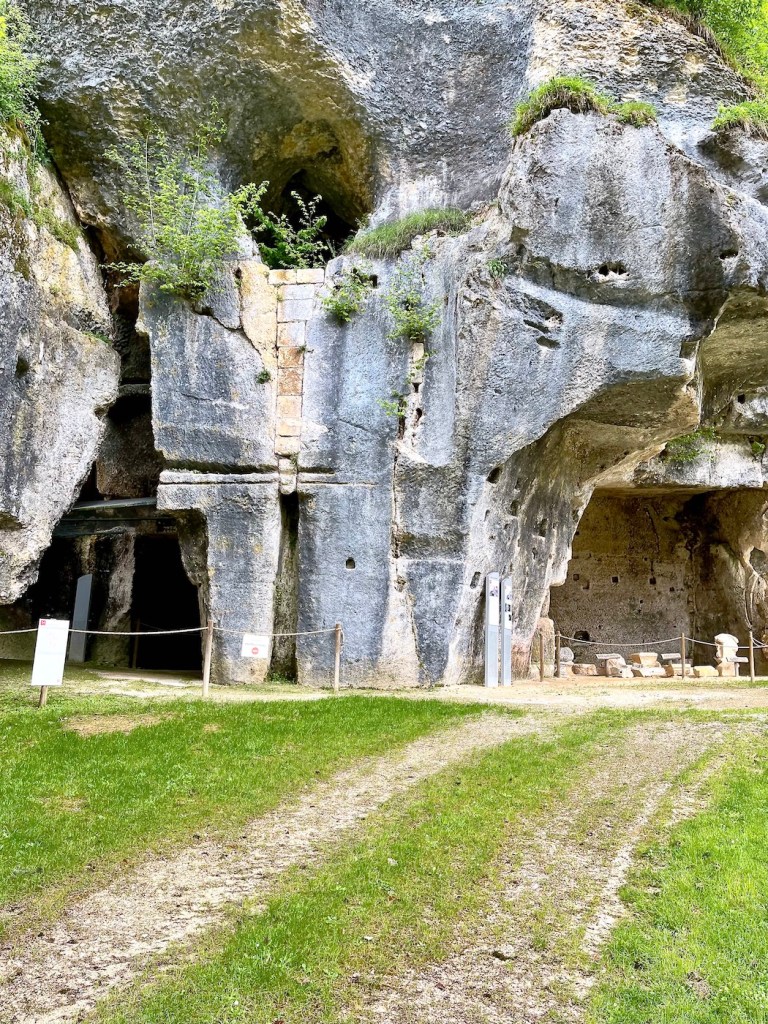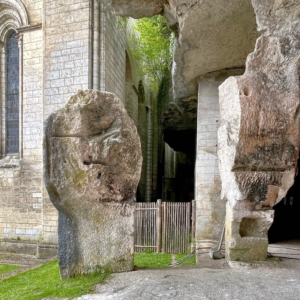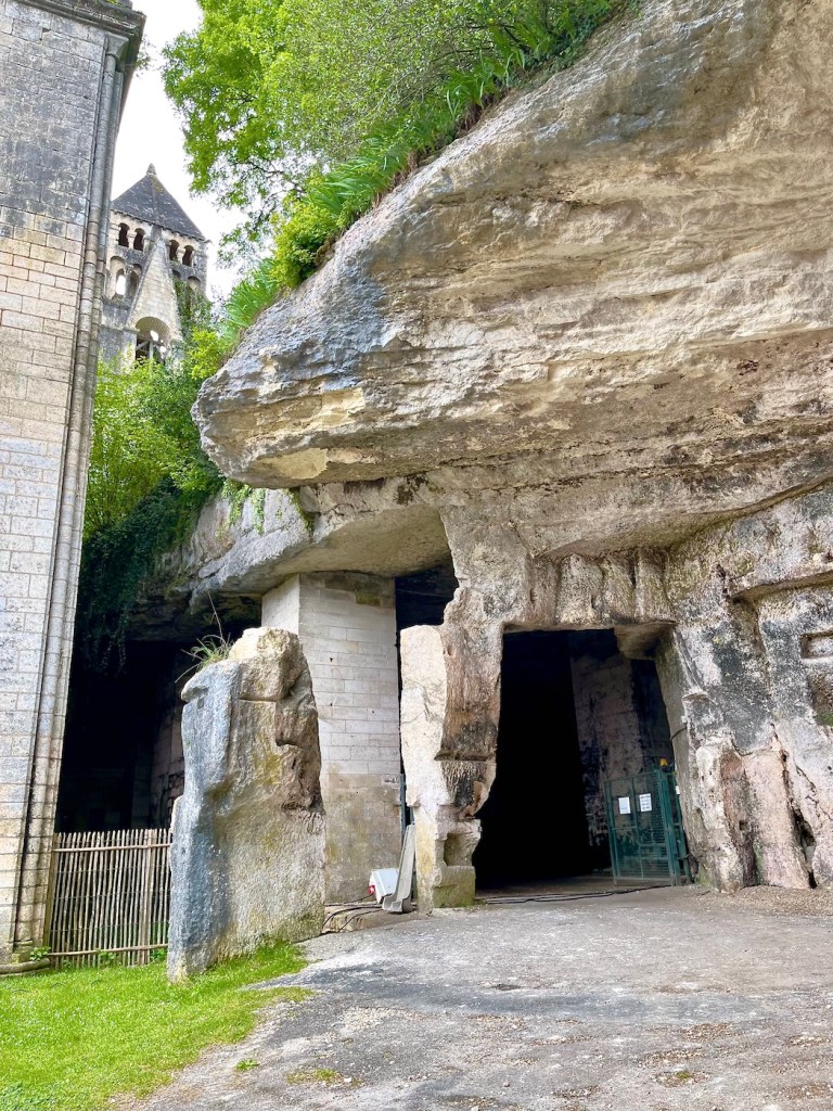 During the early days of the monastery, the monks lived in troglodyte dwellings in the cliffs. These caves behind the abbey building were maintained for a long time and gained special meaning over time. Significant stone carvings, and other artefacts developed into a troglodyte shrine of tremendous importance, drawing pilgrims, worshipers, and tourists alike to the monastery and village at large. Sadly, we weren’t allowed to benefit from this amazing history. The entire cliffside has been closed off to the public owing to falling stones and other hazards.