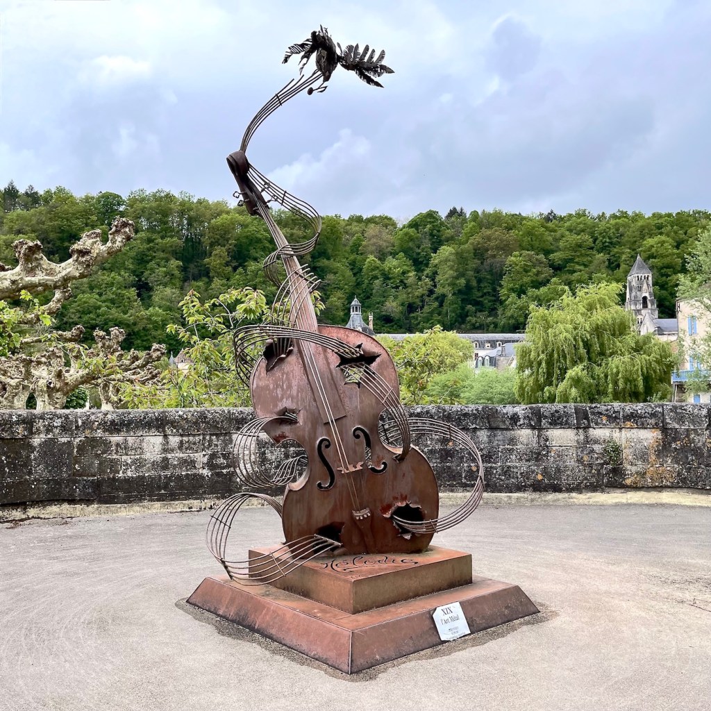 Like the tormented string instrument on the bridge, the dragon and her partially hatched egg [one can see the little wings emerging] are the work of an internationally known metal artist, the late Olivier Dixneuf, lovingly referred to as l’enfant terrible de la sculpture d’acier, unorthodox genius of the steel sculpting world. Our granddaughter would love this dragon on her small island, she adores female dragons.